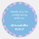 These personalised stickers feature a playful blue-and-lavender chequered pattern, adding a modern and whimsical touch to your celebration. Perfect for sealing envelopes, decorating favour bags, or adding a fun detail to party decor, they’re a versatile choice for weddings, showers, birthdays, and more. The crisp white text in the centre beautifully highlights your heartfelt message of gratitude along with the names and date of your event. These stickers make a simple yet stylish way to tie your theme together and leave a lasting impression on your guests.