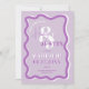A cool bold names wedding save the date with custom names with a hand written calligraphy and serif font, 2 names , two styles with Retro purple lavender curve squiggle wavy wedding photo. All the text, names and background colours are customisable for you to mix and match your wedding suite.