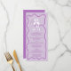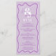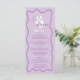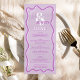 A cool bold wedding menu with custom names with a hand written calligraphy and serif font, 2 names , two styles with Retro boho purple lavender curve squiggle wavy wedding. All the text, names and background colours are customisable for you to mix and match your wedding suite.