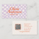 Retro Purple Hand Drawn Chequered Groovy QR Code Business Card