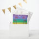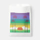 Modern colorful favor bag with retro style sunset and palm trees art.