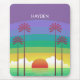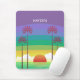 Modern colorful personalised mousepad with retro style sunset and palm trees art.