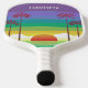 Modern colorful personalised paddle with retro style sunset and palm trees art.