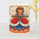 Vintage / Retro Birthday greeting card. Beautiful little queen with a big tray of cupcakes! Queen of Hearts! On Your Birthday!