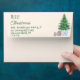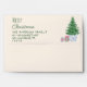 a vintage retro minimalist simple green quirky Merry Christmas tree presents holiday envelope. As you see it features a plain creamy colour background with green handwritten script typography of Return address info. And you got green merry Christmas calligraphy. Along with the your customisable return address. And hand drawn green Christmas tree and colourful presents.