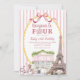 Retro Paris Bonjour 4th Birthday Invitation, Pink Bow Quirky Stripes Birthday Invite, French Parisian Cafe 4th Birthday Invitation, Pink Whimsical Stripes Birthday Invitation, Pink Macaron 4th Birthday Invitation, Eiffel Paris Cafe Birthday Invitation,