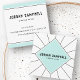 Elegant, white and aqua blue or custom colour, professional business cards or personal profile cards with your name and title/company name printed in a retro font on a diamond shape with black radial lines behind it on the front. On the back are customisable template fields for name, title/company name/speciality and contact information.