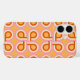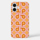 This vibrant digital artwork features a striking retro-inspired pattern composed of stylised letterforms in a repeated layout. The design showcases bold orange shapes with curved edges, accentuated by layered outlines in soft pink and cream hues. Set against a warm orange background, the overall aesthetic radiates a nostalgic vibe reminiscent of mid-century design, making it an eye-catching element for textiles, wallpapers, or contemporary graphic projects.
