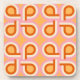 This vibrant digital artwork features a striking retro-inspired pattern composed of stylised letterforms in a repeated layout. The design showcases bold orange shapes with curved edges, accentuated by layered outlines in soft pink and cream hues. Set against a warm orange background, the overall aesthetic radiates a nostalgic vibe reminiscent of mid-century design, making it an eye-catching element for textiles, wallpapers, or contemporary graphic projects.