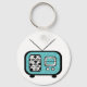 Radio reminiscent of the fifties but with wild patterns. Turquoise and white and black. Antenna on top.