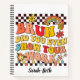 A retro boho colour notebook with groovy flowers, rainbow and chequerboard pattern brings a touch of humour and retro flair into your notebook collection. Add your name or short message at the bottom in a playful font and you can personalise your notebook even more by choosing the paper type: ruled, graph, bullet, sketch, checklist or recipe. You can choose from hardcover or softcover, and you also get to pick the notebook spine colour. Stay organised, jot down notes, song lyrics, poem stanzas, to-do lists, set intentions, doodle or sketch with a colourful retro flair personalised notebook.