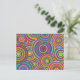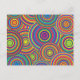 postcard with a groovy retro circles pattern in all the colours of the rainbow.