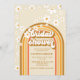 Retro bridal shower invitation with boho rainbow and daisy design.