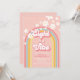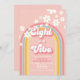 Eight is a Vibe! Retro inspired 8th birthday invitation with 70's style fonts and colours, rainbow, and daisies in pink