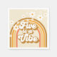 Five is a Vibe! Retro inspired 5th birthday napkins with 70's style fonts and colours, rainbow, and daisies in fall colours. brown, tan and orange colours.