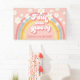 Four Ever Groovy! Retro inspired 4th birthday banner with 70's style fonts and colours, rainbow, and daisies in pink