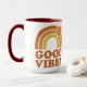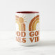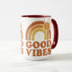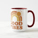 Start your day with positivity using this ceramic mug featuring a retro rainbow and radiant sun design with the bold text GOOD VIBES. With its cheerful colors and uplifting message, this mug is perfect for morning coffee, tea, or as a thoughtful gift for friends and family. Durable and stylish, it brings warmth, joy, and motivation to every sip.