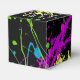 Retro Rainbow of Neon Paint Splatters on Black Favour Box