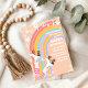 Celebrate in style with this retro rainbow roller skates birthday invitation! Featuring a groovy peach background with daisies, peace signs, and a vibrant rainbow, this design captures the fun and carefree spirit of the 70s. Perfect for kids parties, first birthdays, or any celebration with a hippie boho vibe, this invitation blends nostalgia with playful charm. Guests will love the colourful roller skates and cheerful details that set the tone for a fun-filled event.