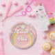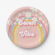 Retro Rainbow Seven is a Vibe Groovy 7th Birthday Paper Plate