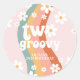 Retro Rainbow Two Groovy Daisy Classic Round Sticker