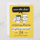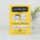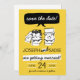 Fun retro save the date card featuring bride and groom raptor dinosaurs. Made with easily customisable colour scheme.