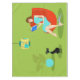 This Retro Reading Woman Tablecloth features a 1960's style, minimalist art, cartoon drawing of a woman who has her priorities in order. This delightful bookworm is entranced in a real page-turner. The shapely brunette is wearing an aqua dress and red glasses, while holding a blue book. She is seated in a comfy, red egg chair. In front of her, a sleek, black cat in a teal collar is enjoying the peace and quiet that comes from living with a bibliophile. Both woman and cat are in a stylish green room. Overhead, there is a kitschy pendant lamp in shades of yellow and turquoise. To the side, there is a lush, tropical, potted plant in an aqua flowerpot. Kitty, if you need something, you'll have to wait until she finishes this chapter!