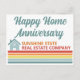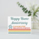 Cute retro real estate company marketing postcards with vintage stripes and colourful script in orange, red, and teal. Customise your own realty business postcards for clients and professional contacts for Happy Home Anniversary or other events.