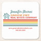 Cute retro real estate company marketing coaster with vintage stripes and colourful script in orange, red, and teal. Customise your own realty business promotional items for clients and professional contacts for an open house.