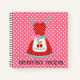 Adorable retro looking recipe note book. Customise the pink background colour. White polka dots with a darling vintage blue, pink and red apron. Personalised the names. The back shows an image of a layered cake, with the words "I bake because punching people is frowned upon". This spiral notebook makes a wonderful gift for the home cook or baker. To see other products for a chef or baker - Please visit "The Hungarican Princess - A Boutique™" @zazzle.com/hungaricanprincess.