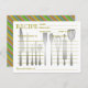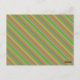 A card with colourful lines, stripes placed on white surface with personalised background retro recipe on front postcard. It is customised with your initial and name.