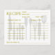 A card with green lines, stripes placed on white surface with personalised background retro recipe on front postcard. It is customised with your initial and name.