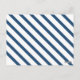A card with blue lines, stripes placed on white surface with personalised background retro recipe on front postcard. It is customised with your initial and name.