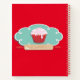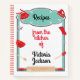 Fun and colourful retro baking and cooking elements Recipe Cookbook. Features vintage apron, mixer, measuring spoons, oven mitt, mixing bowl, spatula, wooden spoon and rolling pin with colours of red, white and aqua. Hand drawn by McBooboos