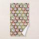 This towel set has a mid-century modern design of rounded rectangles in green, gold, orange, or brown with starbursts inside. If you like the design but prefer different colours, message me.