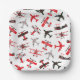 Retro Red and Black WWII Military Aeroplane Patter Paper Plate