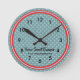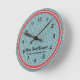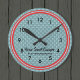 This battery powered wall clock is designed to be a stylish decor touch to any RV home, travel trailer or vacation cottage and doesn't require an electric source. Designed in a retro style pattern in shades of red and teal and ready for your own personalised text. See lots of coordinating items at Camp_and_Cottage at Zazzle.