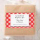 Retro country red and white plaid pattern of checks and stripes on customisable stickers in retro block and scrips letters, on a faux doily.  Customise it to change fonts or sizing, add fields or change background colours or label shape, even save your design for later.