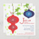 A cool take on the traditional ornament is the look I was going for with this cool retro red and blue ornament design. Makes a fun invitation for your holiday get-together. Be sure to check out our matching stickers and address labels to create a great coordinated look.