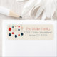 Cute retro Christmas card return address labels with vintage 70 style ornaments in red, blue, and ivory above your family name. Beautiful nostalgic holiday shipping labels.