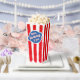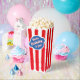 These Fun Retro Popcorn Favour Boxes feature a classic retro design with red and white striped paintbrush patterns, evoking a nostalgic movie night vibe. In the centre, a blue circle with a white border showcases editable text in a stylish vintage white font with a red shadow outline. On the reverse side, the birthday person's name is displayed in the same stylish font, along with customisable text in a clean, simple typeface. Check colour variations and explore our entire collection of movie-themed birthday party supplies and invitations. These favour boxes add a charming touch, combining retro aesthetics with personalised details for a memorable event.