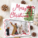 Retro Red Bow Pine Squiggle Frame Photo Christmas Holiday Card