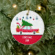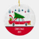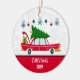 Retro Red Car Carrying a Christmas Tree Ceramic Ornament