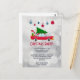 Retro Red Car Carrying a Christmas Tree Invite Postcard
