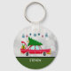 Retro Red Car Carrying a Christmas Tree Key Ring