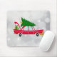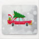 Retro Red Car Carrying a Christmas Tree Mouse Pad