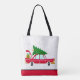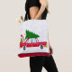 Retro Red Car Carrying a Christmas Tree Tote Bag