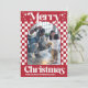 A merry retro red and white chequerboard grid patterns this bright holiday greeting card. Featuring a cheery red lined arch photo frame and space for your special holiday message.