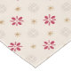 A vintage wallpaper pattern tablecloth with a fun classic retro red and gold star design against a beige background.