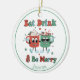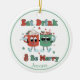 Gift this personalised Christmas ornament that has the funny message "eat, drink, and be merry" on it. This ornament is great for the holiday season, and makes a great Christmas gift. Add name or family name .